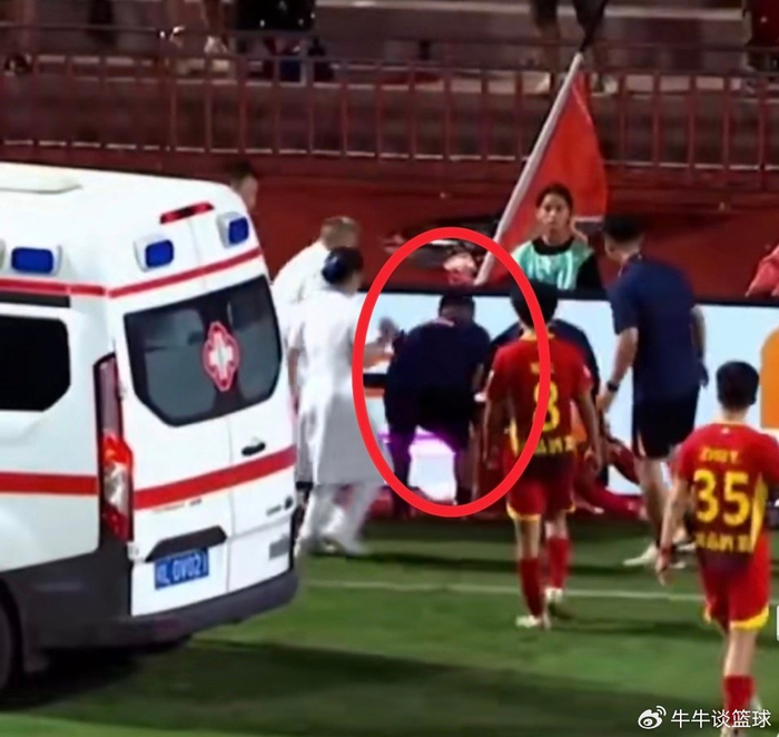 但是,广西队的两名队医一个搂着阿萨莫阿的脖子,一个托着他的后背,将他强行从地上拽起来,而一旁的专业医护人员也没有进行劝阻,就这么任由队医进行非常不专业的处理。