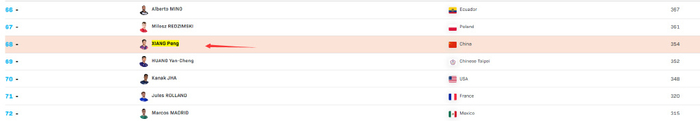大满贯之前向鹏世界排名积分354分,而四强有700分,也就是提升到1054分,向鹏从68位提升到世界排名第23,也就是提升了45个位次,向鹏在之后的支线赛再多拿几次冠军有希望进入世界前20。