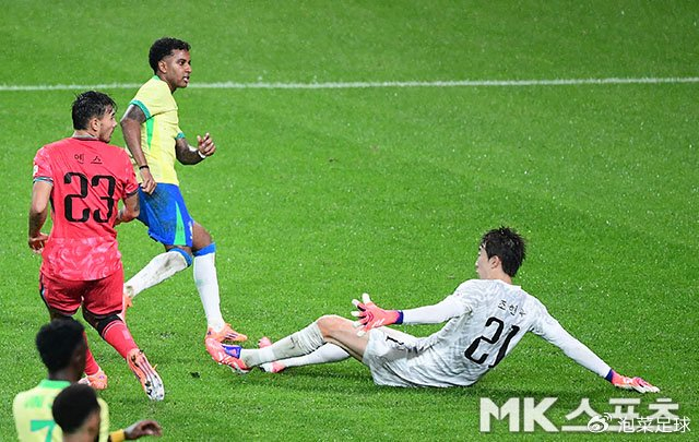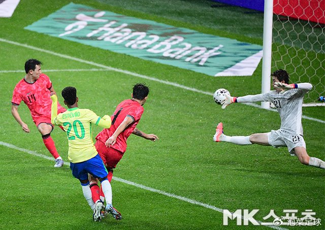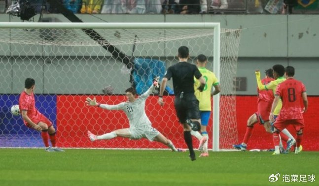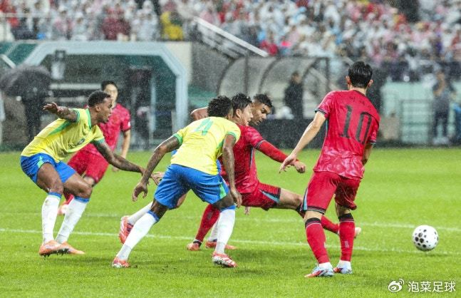 顶住了对手的进攻后,韩国队也开始组织起有效的进攻。但遗憾的是,无论是孙兴慜,还是李刚仁,完全和队友无法形成默契。当巴西队出现机会时,对手立刻打门,哪怕是远射,而韩国则是频繁倒脚,直至把进攻的机会通过倒脚反造成自己越位。而韩国队除了金玟哉,其余的两个中卫完全不在状态,正是看到了这样的机会,巴西队再度卷土重来。第40分钟,卡塞米罗和罗德里戈打出“二过一”配合,后者在扣过曹侑珉后突然起脚射门,2-0!巴西队再度取得进球。从这粒进球传球到进攻完成,巴西队只用了两脚。半场结束,韩国队0-2落后!