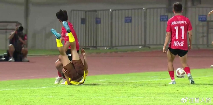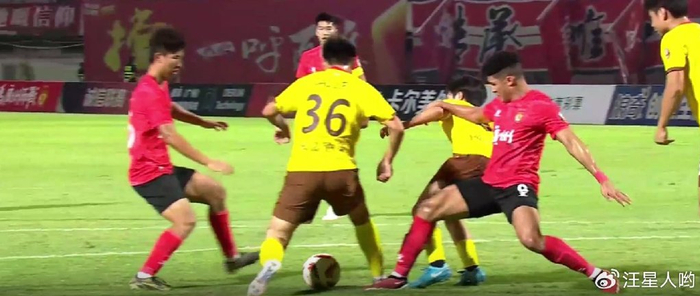 下半场开始后,广西队尝试着反扑。不过两队的争抢时的动作有些越来越大,火药味也随之有些浓。