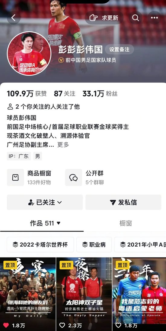 专访心得:感谢彭伟国指导在百忙之中接受鸣聊体育专访,这次攀谈还是很有收获的,不仅了解了国哥近况,亦是展示退役职业足球运动员的另一种与时俱进的生态形式,足以供更多人参考。除此之外,国哥还首次分享了对广州蒲公英足球俱乐部的相关观点,让人受益匪浅。接下来,我们还会继续关注中国足坛名宿彭伟国先生的动态,祝他在跨界领域风生水起,一切顺利。