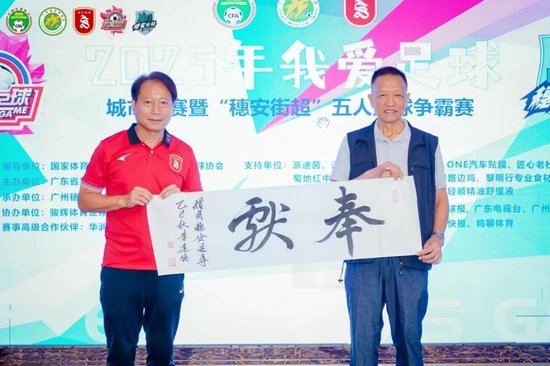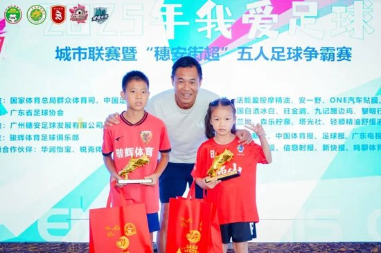 颁奖典礼上,除了有主角周穗安(广东省足协副主席),主委会还请来了一众足坛大咖,包括:彭伟国(前国脚、1994赛季最佳球员)、胡志军(前国脚、1994赛季最佳射手)、张春晖(2025佛山西甲最佳守门员),彭锦波(现役广州籍国脚黄政宇、林良铭青训教练),李少锋(国际裁判、广州足协裁委会主任)……现场名宿除了给孩子们颁奖,还有给他们不断签名合影、积极互动,好一番热闹祥和的景象,相信这也是广州足球、广东足球乃至中国足球的福音——后继有人,未来可期!