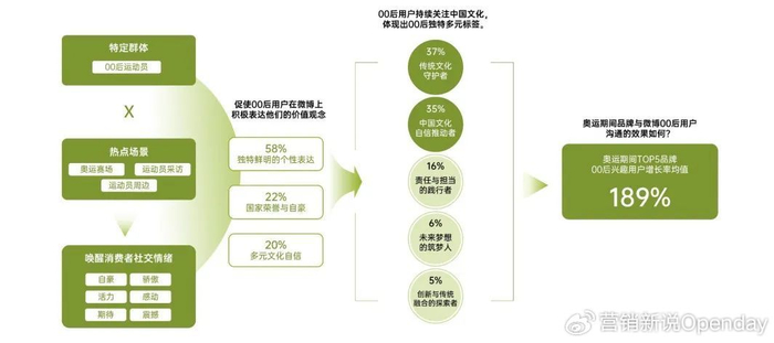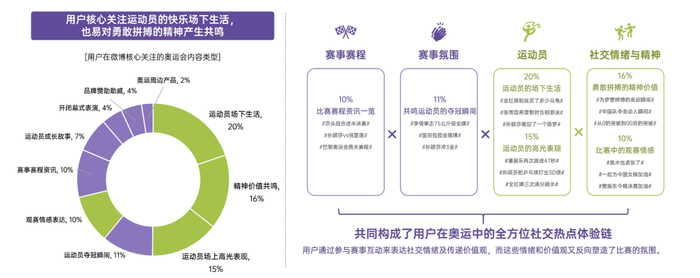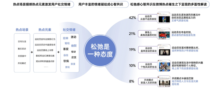 微博在奥运社交热点中展现出了其独特的价值和优势。品牌在微博平台,不仅能够实现与消费者的即时互动,洞察社交热点趋势融入社交热点氛围,更进一步通过【(人+热点场景)x社交情绪】形成与用户的心智共识,深化品牌价值,赢得消费者的忠诚。