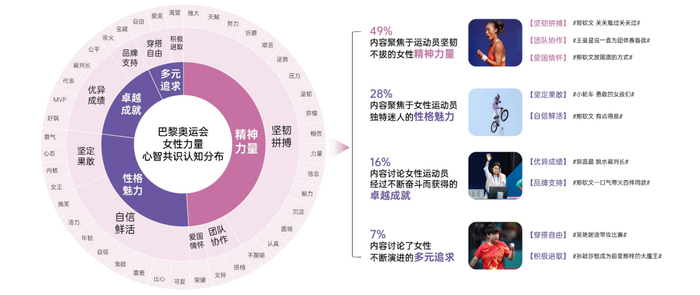 巴黎奥运会女性运动员占比首次达到50%,引发社会广泛讨论,女性运动员粉丝增长显著。黄雨婷、陈艺文、孙颖莎等运动员和裁判员在微博的粉丝大涨。在赛场上下,多维度的【“她”力量】成为热议焦点,从开幕式致敬传奇女性,到奥运期间选手们赛场表现和场下生活、训练日常等,引发不同用户群体的差异化社交热点关注,促成对女性力量的新共识。