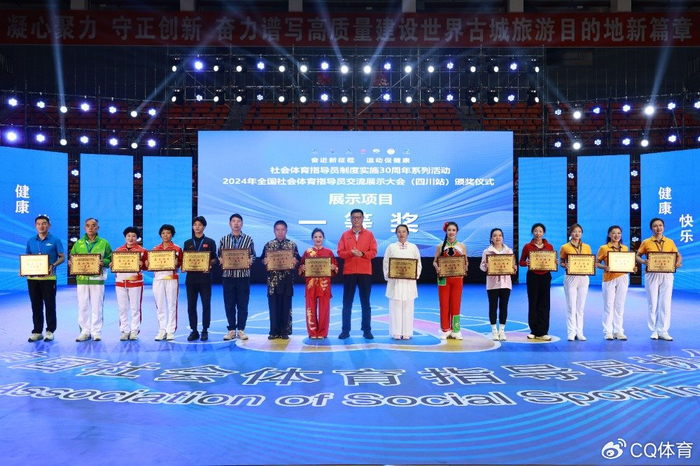 10月16日晚,2024年全国社会体育指导员交流展示大会(四川站)在阆中市体育中心收官。重庆选派的两支队伍在交流项目健身操舞类和展示项目中,均获得一等奖。
