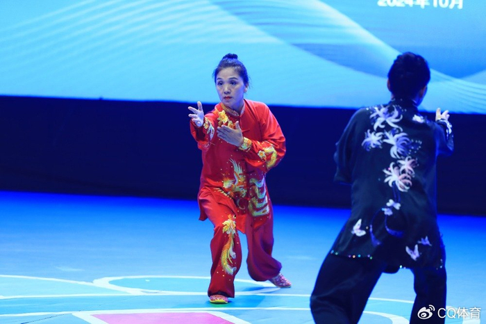 另外一支重庆队伍来自九龙坡区,参加展示的是一对从小习练武术的亲姐妹——熊玲和熊琦。姐姐熊玲是国家级社会体育指导员、八卦掌非遗第五代传承人、九龙坡区八卦掌研究中心副主任、厷武武术馆馆长,妹妹熊琦是厷武武术馆副馆长、一级社会体育指导员。