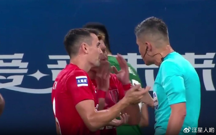 第57分钟,国安球员在一次拼抢中撞倒了成都蓉城队员,而此时国安队员则冲向裁判,似乎在索要红牌。因为这是一个比较正常的对抗动作,裁判员也仅仅是给了一张黄牌。这一点引起了成都球迷的不满,顿时,全场高喊“裁判傻*”。