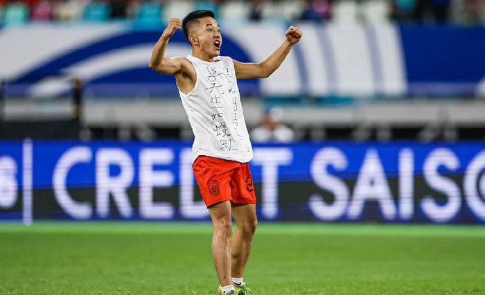 随后被到场的安保人员带出场地,比赛也因此中断了几分钟,随后中国队的节奏被打乱,日本队连续打入两粒任意球,上半场2比0的优势进入中场休息。
