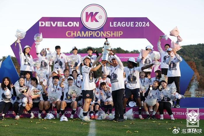 2024年对于韩国WK联赛来说是极具颠覆性的一年。由于仁川现代制铁女足多名主力出走,球队的整体实力出现了下降,这也导致2024赛季的WK联赛出现了群雄割据的局面。整个赛季常规赛打到倒数第二场,卫冕冠军仁川现代制铁提前宣告出局无缘前三,这也是球队建队以来最差成绩。而取代她们的新霸主,正是重金打造的水原FC女足,在去年杀入决赛折戟后,今年水原FC女足痛定思痛,招募了姜綵林等国脚,最终一路过关斩将。半决赛淘汰“千年老二”庆州韩国水力原子力,又在总决赛中击败了常规赛冠军华川KSPO,为自己的战袍荣耀填上了第二颗金星。2024年韩国女子足坛,仁川现代制铁女足多年的霸主地位被推翻,水原FC女足时隔14年再度称雄,对于韩国女足联赛的发展来说,这确实是进步的一件事,也会刺激更多的球队为称雄去努力。