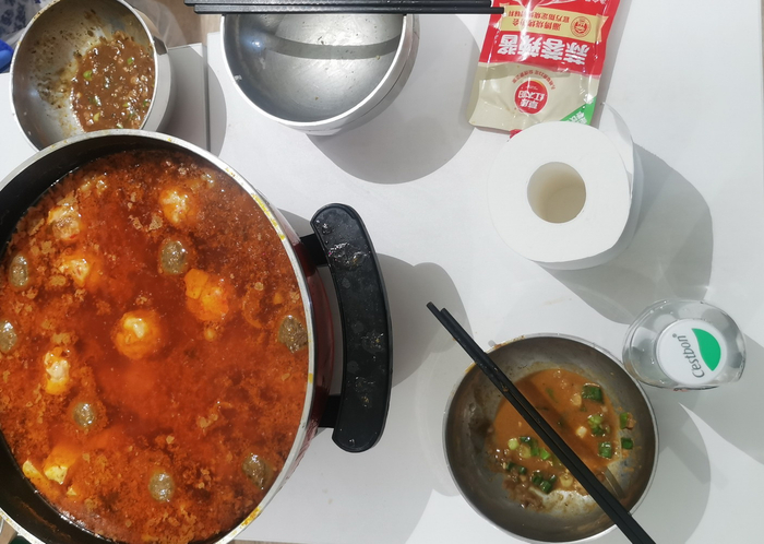 中午一位大哥喊我去歹火锅,很丰盛。我拌芝麻酱的时候,根本没用力,筷子竟然断了一根,我当时就说:毁了,大连人队真保不住了。