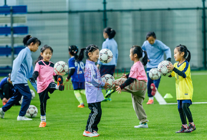 进入室内馆后,一眼就看到小朋友在接受足球训练,孩子们各个带银亲,心情立马好了。
