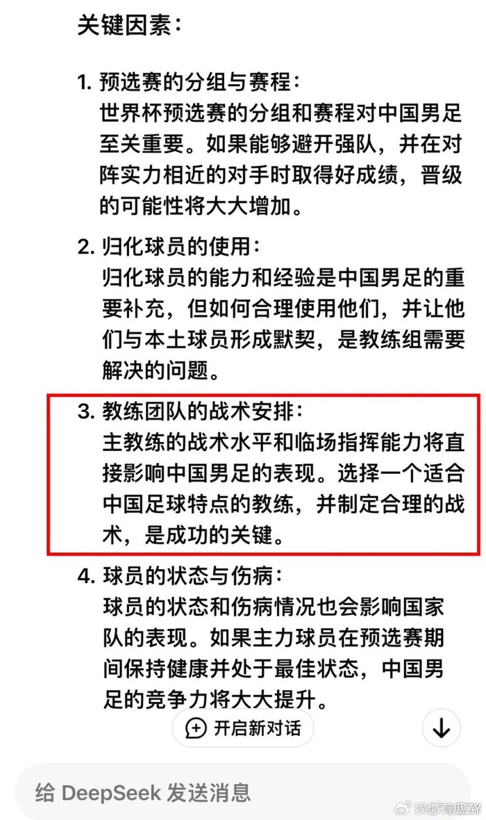 于是,董路就问道:“中国队能打进2026年世界杯吗?”而该软件给出了4点关键因素。