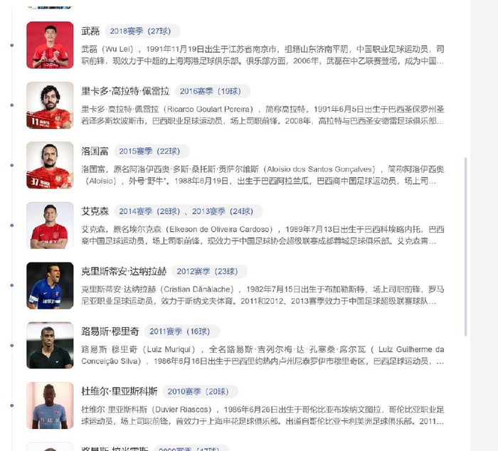 之前申花最佳射手是2010赛季的里亚斯科斯,28场比赛进20个球。 在之前申花最佳射手是1995甲A时代的范志毅, 进了15个球。