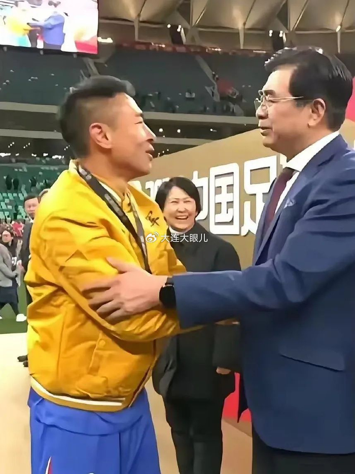 2025中国足球联赛开篇之战落下大幕,除了激动人心跌宕起伏的比赛进程外,赛后有一幕场景也是被网络反复传播:在超级杯赛后颁奖仪式环节,中国足协主席宋凯和于汉超亲切握手,宋主席夸奖于汉超,这老将就是不一样啊!而于汉超一句话引得足协主席宋凯和周围嘉宾开怀欢颜:你一来我就进球!