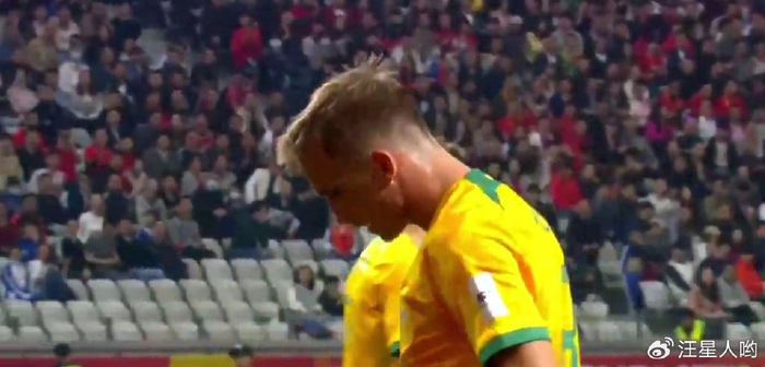 6名替补登场的中国U20,其板凳深度是可想而知的。在上半场的比赛中,国足U20在比赛进程上,让我们再一次看到了昔日的那支中国队,无论是脚下技术、意识上,与澳大利亚队都有很大的差距。我们不得不承认一点,澳大利亚队在实力上确实更胜一筹。上半场如果没有剻纪闻的那粒进球,中国U20可真是一无是处。上半场蒯纪闻的那个进球,是国青小将3人组打出的梦幻般配合,蒯纪闻停球转身射门得手,从而瓦解了澳洲9人防线,确实非常精彩。