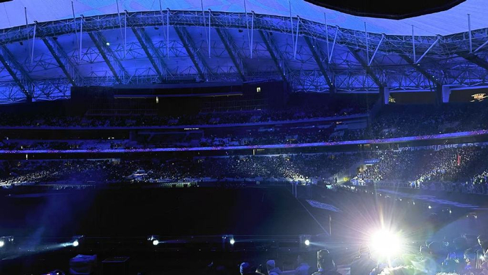 为了难得一见的开幕式,我们进场的时间其实要早过去年很多场地,却发现人满为患,几乎找不到落脚的地方。开幕式前,看台前方的灯光直射着我们,晃得有些睁不开眼。