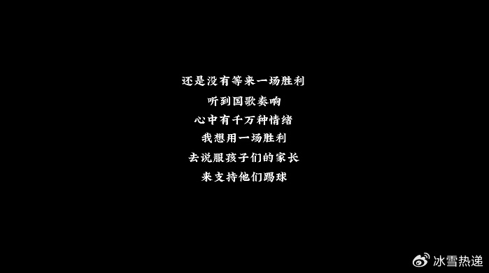 “还是没有等来一场胜利,听到国歌奏响,心中有千万种情绪,我想用一场胜利,去说服孩子们的家长来支持他们踢球,中国足球加油!”