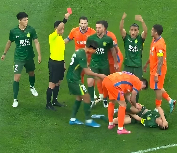 中超联赛迎来了一场焦点之战,北京国安主场迎战山东泰山。赛前积分榜上,山东泰山高居第二,北京国安位列第五,泰山队在多赛一场的情况下领先国安6分。上轮国安在4-1领先的情况下最后10分钟连丢3球,遭到武汉三***哨绝平,而山东泰山在德比战中客场5-1大胜青岛西海岸。京鲁大战一直以来都是中国足坛一道靓丽的风景线,可就在球迷期待一场火星撞地球的比赛时,裁判却再次成为主角。这场比赛泰山队10分钟两红,最终国安6-1逆转泰山,送上一场惨案。