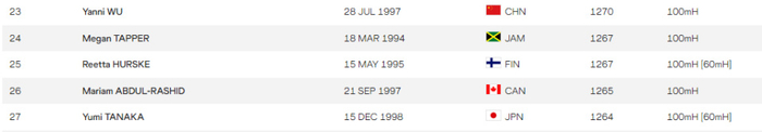 吴艳妮作为目前中国女子100米栏的代表性人物,她在去年成功参加巴黎奥运会。至于吴艳妮目前最新的世界排名升至世界第23名,创造个人职业生涯新高纪录,也是中国选手在该项目的最高世界排名。