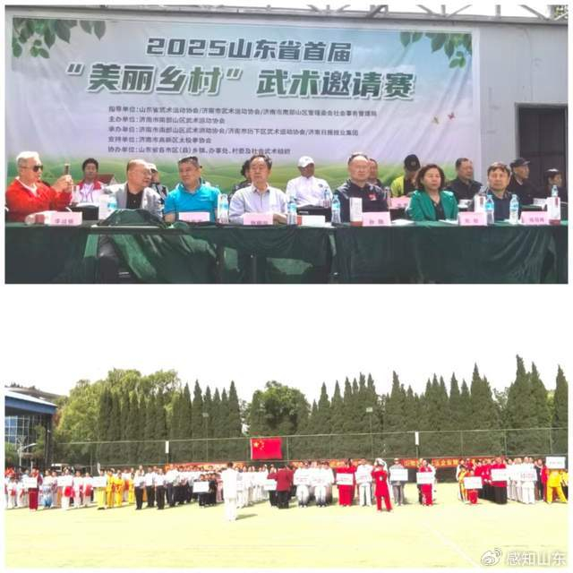 中华武术薪火传,乡村振兴展新颜。2025年5月17日,在山东省武术运动协会、济南市武术运动协会、济南市南部山区管理委会社会事务管理局等指导下,由济南市南部山区武术运动协会主办,济南市南部山区武术运动协会、济南市历下区武术运动协会、济南日报报业集团等联合承办、济南市高新区太极拳协会提供支持、山东省各市区(县)乡镇、办事处、村委及社会武术组织给予协办的2025山东省首届“美丽乡村”武术邀请赛在济南市南部山区山青世界院内广场盛大开幕。