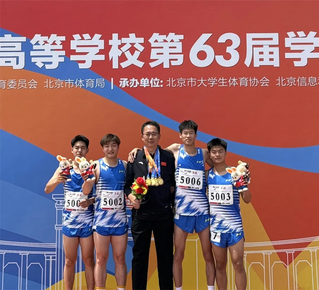 在男子4*100米接力项目中,来自24机电3班王佳华、陈炜奇,24机电5班范俊杰,24家政1班谭斯宇,四位运动员凭借近乎完美的配合,力压群雄斩获分量最重、含金量最高的男子4*100米金牌,这是北京劳动保障职业学院田径队建队以来首次斩获该项目金牌。