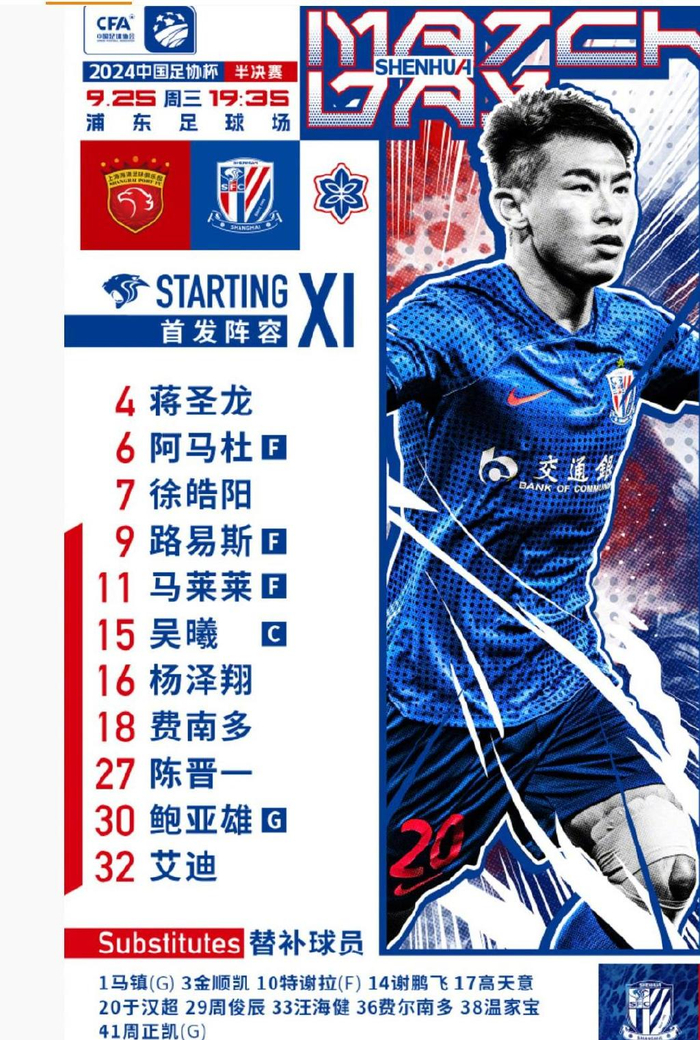 为此申花还得派出最强阵容去客场打比赛,免得到时候翻车,因为他们在中超积分榜差距2分,如果没有胜利的话,输球跟平局都是一样的。因此阵容大概如下