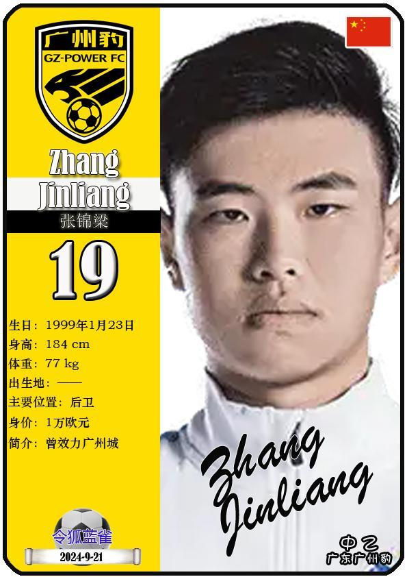 19 张锦梁:司职后卫,国籍为中国,现效力于中乙-广东广州豹足球俱乐部。