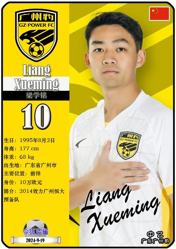10 梁学铭:司职前锋,国籍为中国,现效力于中乙-广东广州豹足球俱乐部。