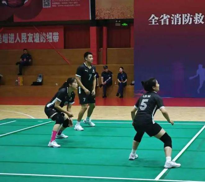 气排球赛场上,遂宁支队队员化身“空中雄鹰”,以雷霆之势席卷赛场。