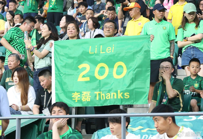 6月17日,中超第6轮进行了一场补赛,北京国安主场迎战青岛西海岸,这场比赛原定于4月份进行,但因为极端天气延期到了今天进行。本场比赛双方经过90分钟苦战,国安1:0青岛西海岸,国安队凭借此胜登顶榜首。比赛开始前,国安队33岁老将李磊从俱乐部总经理李明手中接过纪念球衣,庆祝他在10年间为国安队出战各项比赛达到200场里程碑。随后,御林军球迷组织用灯光打出“李磊”和200场爱心图案,为这位国安老将送上职业生涯的祝福。