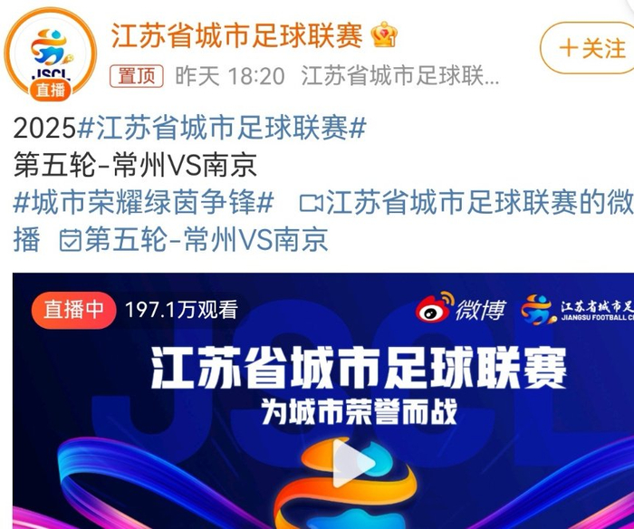 另一项数据显示,观看大连英博对北京国安一战的球迷只有1.7万,而观看常州对南京一战的球迷则多达197.1万。有网友点评,“足协杯和苏超比这流量差了不是一点,比想象的还要夸张啊。 ”