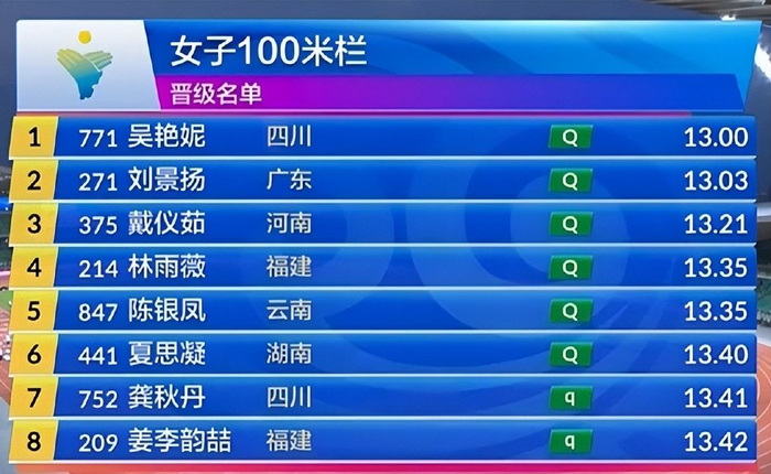 8月3日,全国田径锦标赛继续进行。在女子100米栏预赛的比赛当中,两位中国直道栏名将林雨薇和吴艳妮均出现在了比赛当中。吴艳妮以13秒00的成绩排名所有参赛选手第1位,林雨薇13秒35同样获得了晋级资格,两人将在决赛上演一场一姐大战。