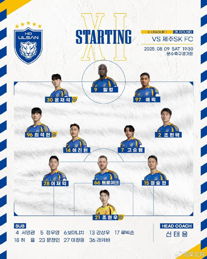 我们今天的头条自然是申台龙回归K1联赛的首秀。7轮不胜的蔚山HD FC换帅后,申台龙首战就迎来了自己的恩师金鹤范,对于这个有知遇之恩的教练,申台龙也深知第一场比赛的难度很大。因为对方太了解自己了,而正如申台龙所想,蔚山这场比赛赢得相当不轻松。而如果不是VAR明察秋毫,那个唯一的进球也就被边裁扼杀了。但显然,济州认为,那就是个越位球。