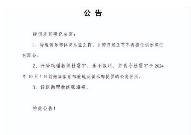 众所皆知,广西平果哈嘹为了能够进入中超,这几年的投入真心是不少,特别是本赛季,广西平果哈嘹的投入更是中甲最高的。可就是这样一支中甲豪门却在9月29日发布通告开除了球队的体育总监王霄,同时开除了球队的助理教练杜震宇,在开除杜震宇的时候用了生僻的“永不叙用”的字眼,并且责任杜震宇在10月1日前必须办理俱乐部驻地和俱乐部所提供的公寓住所。