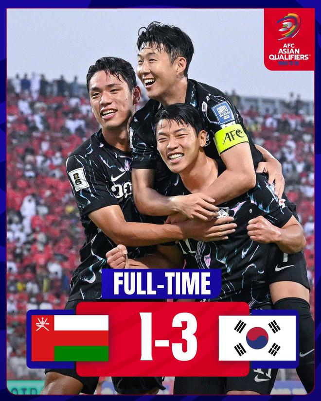 另外,韩国客场面对阿曼取得了3-1的胜利,其中孙兴慜一己之力带队赢球,贡献1个进球、2次助攻,还送阿曼开局2连败,积0分垫底,出线形势跟国足差不多。