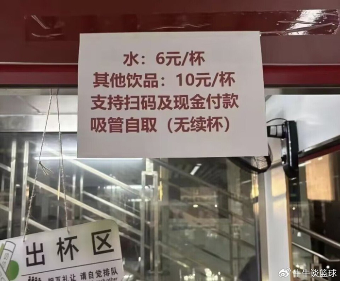 然而,有球迷发现,长沙赛区规定,瓶装水不允许被带进球场,想要喝水只能去现场买,而一杯矿泉水(不是一瓶)的价格竟然高达6元,杯子也很小,而其他饮料的价格,更是达到了一杯10元!