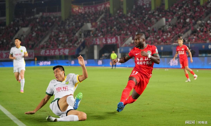 河南队没被国安的攻势吓住。第12分钟,阿奇姆彭送出精准传中,钟义浩跟上射门,皮球擦着门柱滑过;第20分钟,钟义浩再试一脚,可惜打高了;第35分钟,阿奇姆彭的射门被国安后卫封堵——他们在主场打得越来越主动,每一次反击都带着威胁。终于在第40分钟,河南队的连续攻势有了回报,钟义浩在乱战中找到机会,一脚破门,1-0,主场球迷瞬间沸腾。
