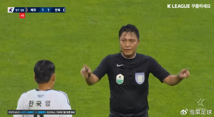 韩国当地时间10月3日,K1和K2联赛第32轮分别在济州和城南开战。在K1的舞台,上轮遭遇裁判“操控比赛”的济州SK FC迎来了立志客场赢球提前夺冠的全北现代汽车,结果他们在半场0-1落后的情况下,依靠南泰熙在第96分钟的禁区内怒射,1-1逼平对手,拒绝了对手赢球提前夺冠的美梦。